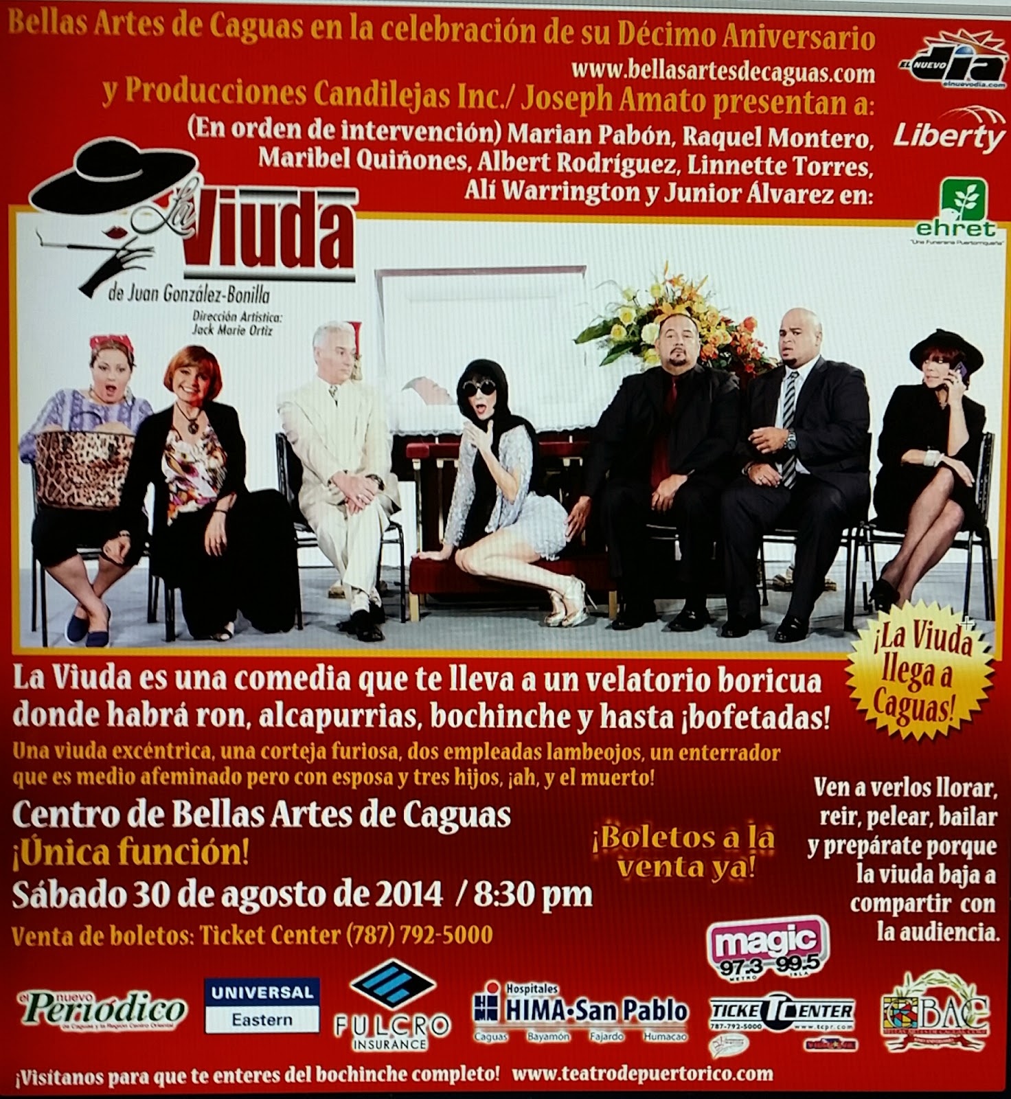 nuestra compañia llevará a la ciudad de Caguas la hilarante comedia La Viuda del dramaturgo
